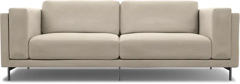 This cover includes 7 pieces: 1 frame cover, 2 seat covers, 2 back covers and 2 inner armrest covers. All cushion covers are reversible. The cover will only fit the Nockeby 3 seater sofa from IKEA and not similar models. Be careful not to confuse with the IKEA Norsborg, which looks and sounds similar. You can tell you have a Nockeby if the armrests are enclosed within the sofa frame. Sold at IKEA from 2015-present.