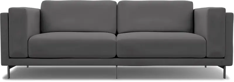 This cover includes 7 pieces: 1 frame cover, 2 seat covers, 2 back covers and 2 inner armrest covers. All cushion covers are reversible. The cover will only fit the Nockeby 3 seater sofa from IKEA and not similar models. Be careful not to confuse with the IKEA Norsborg, which looks and sounds similar. You can tell you have a Nockeby if the armrests are enclosed within the sofa frame. Sold at IKEA from 2015-present.