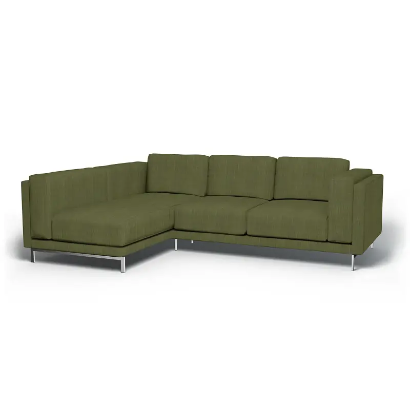 Ikea - Nockeby 3 Seater Sofa With Left Chaise Cover Moss Green Boucl Texture - Bemz