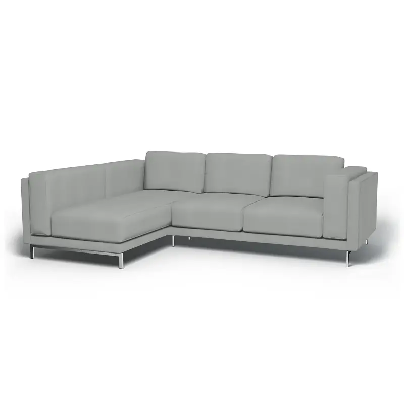 Ikea - Nockeby 3 Seater Sofa With Left Chaise Cover Silver Grey Cotton - Bemz