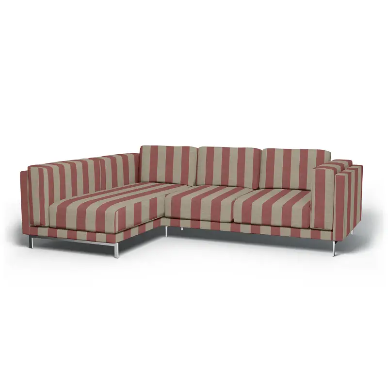 Ikea - Nockeby 3 Seater Sofa With Left Chaise Cover Soft Red Linen - Bemz