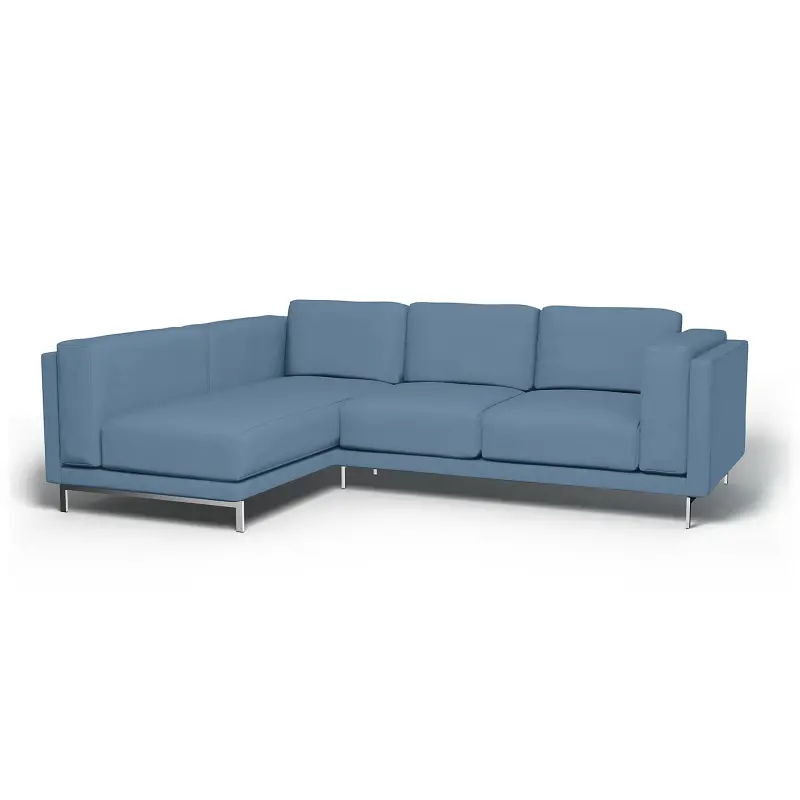 Ikea - Nockeby 3 Seater Sofa With Left Chaise Cover Vintage Blue Linen - Bemz