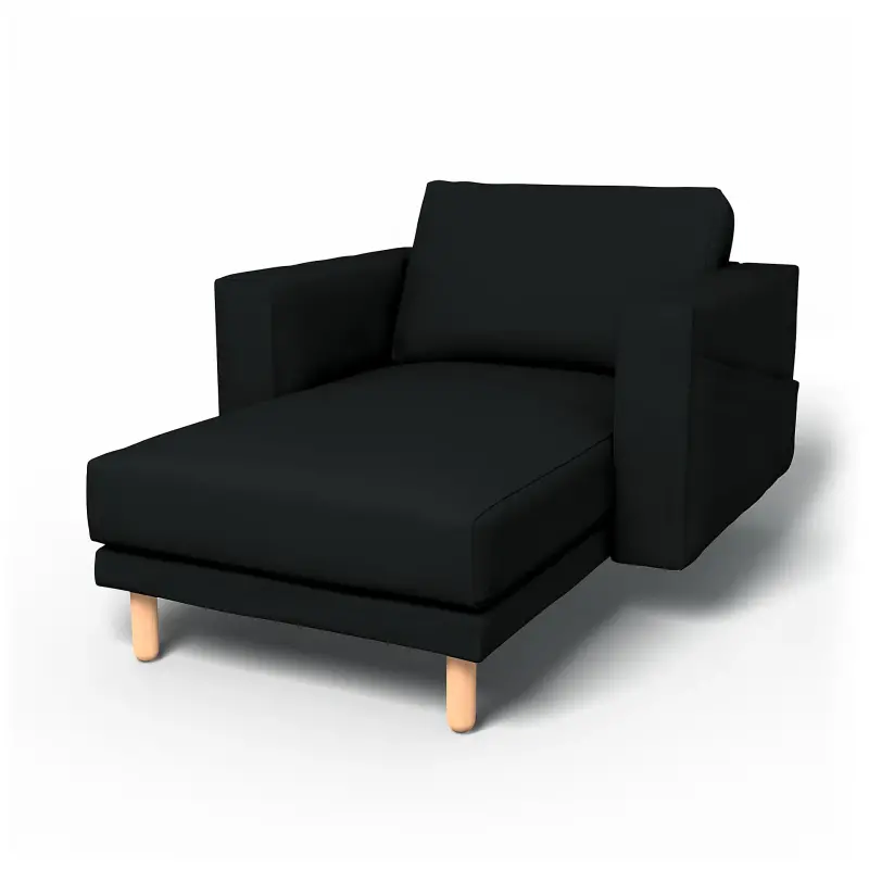 Ikea - Norsborg Stand Alone Chaise With Arms Cover Jet Black Cotton - Bemz