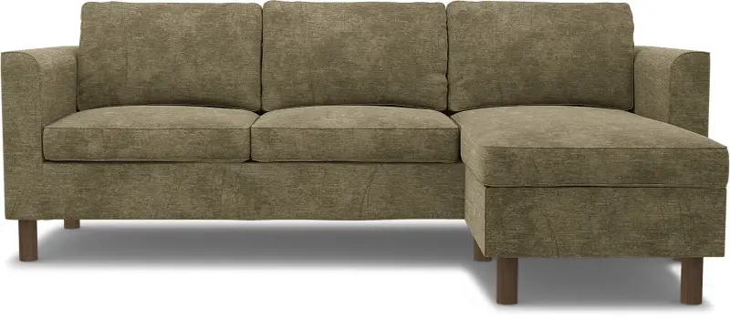 This Bemz cover fits the IKEA Pärup 3-seat sofa with chaise longue (235 cm long). It’s a 7-piece custom cover that includes: 1 sofa frame cover, 3 back cushion covers, 2 seat cushion covers, and 1 chaise longue cover. The cover is easy to put on with no assembly required. The sofa frame cover slides over the armrest and backrest and is pulled down over the seating area. Fitting instructions: Remove the original IKEA slipcover before fitting the custom-made Bemz cover.