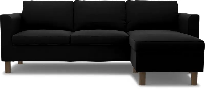 This Bemz cover fits the IKEA Pärup 3-seat sofa with chaise longue (235 cm long). It’s a 7-piece custom cover that includes: 1 sofa frame cover, 3 back cushion covers, 2 seat cushion covers, and 1 chaise longue cover. The cover is easy to put on with no assembly required. The sofa frame cover slides over the armrest and backrest and is pulled down over the seating area. Fitting instructions: Remove the original IKEA slipcover before fitting the custom-made Bemz cover.