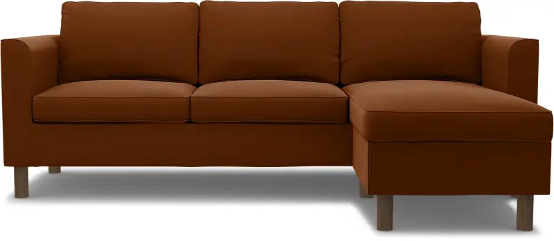 This Bemz cover fits the IKEA Pärup 3-seat sofa with chaise longue (235 cm long). It’s a 7-piece custom cover that includes: 1 sofa frame cover, 3 back cushion covers, 2 seat cushion covers, and 1 chaise longue cover. The cover is easy to put on with no assembly required. The sofa frame cover slides over the armrest and backrest and is pulled down over the seating area. Fitting instructions: Remove the original IKEA slipcover before fitting the custom-made Bemz cover.