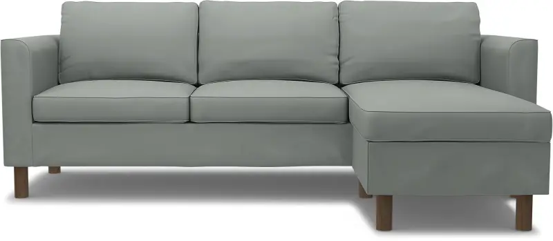 This Bemz cover fits the IKEA Pärup 3-seat sofa with chaise longue (235 cm long). It’s a 7-piece custom cover that includes: 1 sofa frame cover, 3 back cushion covers, 2 seat cushion covers, and 1 chaise longue cover. The cover is easy to put on with no assembly required. The sofa frame cover slides over the armrest and backrest and is pulled down over the seating area. Fitting instructions: Remove the original IKEA slipcover before fitting the custom-made Bemz cover.