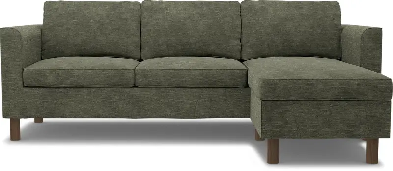 This Bemz cover fits the IKEA Pärup 3-seat sofa with chaise longue (235 cm long). It’s a 7-piece custom cover that includes: 1 sofa frame cover, 3 back cushion covers, 2 seat cushion covers, and 1 chaise longue cover. The cover is easy to put on with no assembly required. The sofa frame cover slides over the armrest and backrest and is pulled down over the seating area. Fitting instructions: Remove the original IKEA slipcover before fitting the custom-made Bemz cover.