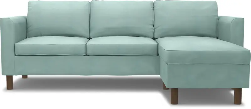 This Bemz cover fits the IKEA Pärup 3-seat sofa with chaise longue (235 cm long). It’s a 7-piece custom cover that includes: 1 sofa frame cover, 3 back cushion covers, 2 seat cushion covers, and 1 chaise longue cover. The cover is easy to put on with no assembly required. The sofa frame cover slides over the armrest and backrest and is pulled down over the seating area. Fitting instructions: Remove the original IKEA slipcover before fitting the custom-made Bemz cover.