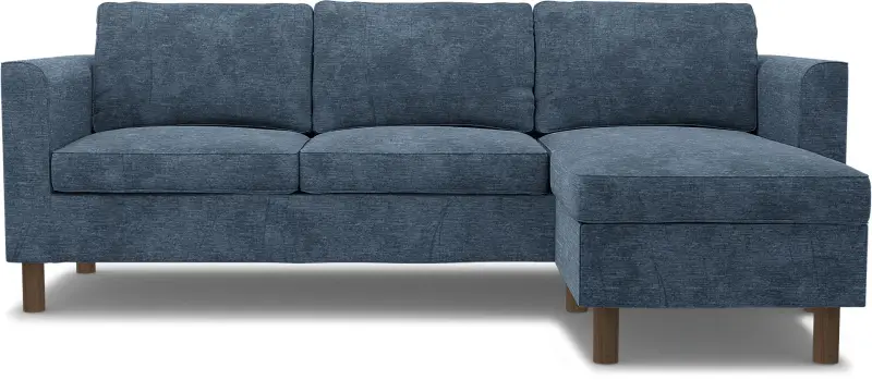 This Bemz cover fits the IKEA Pärup 3-seat sofa with chaise longue (235 cm long). It’s a 7-piece custom cover that includes: 1 sofa frame cover, 3 back cushion covers, 2 seat cushion covers, and 1 chaise longue cover. The cover is easy to put on with no assembly required. The sofa frame cover slides over the armrest and backrest and is pulled down over the seating area. Fitting instructions: Remove the original IKEA slipcover before fitting the custom-made Bemz cover.