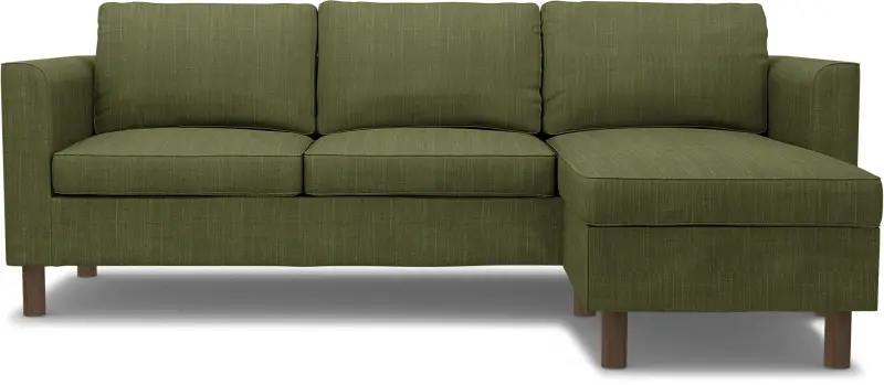 This Bemz cover fits the IKEA Pärup 3-seat sofa with chaise longue (235 cm long). It’s a 7-piece custom cover that includes: 1 sofa frame cover, 3 back cushion covers, 2 seat cushion covers, and 1 chaise longue cover. The cover is easy to put on with no assembly required. The sofa frame cover slides over the armrest and backrest and is pulled down over the seating area. Fitting instructions: Remove the original IKEA slipcover before fitting the custom-made Bemz cover.
