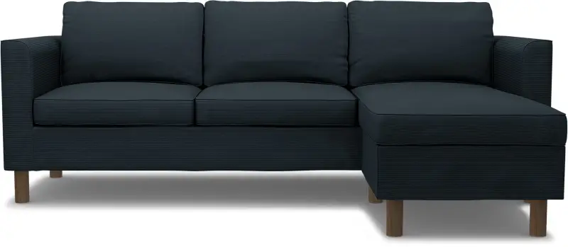 This Bemz cover fits the IKEA Pärup 3-seat sofa with chaise longue (235 cm long). It’s a 7-piece custom cover that includes: 1 sofa frame cover, 3 back cushion covers, 2 seat cushion covers, and 1 chaise longue cover. The cover is easy to put on with no assembly required. The sofa frame cover slides over the armrest and backrest and is pulled down over the seating area. Fitting instructions: Remove the original IKEA slipcover before fitting the custom-made Bemz cover.