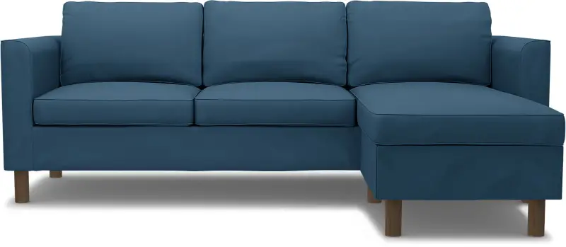 This Bemz cover fits the IKEA Pärup 3-seat sofa with chaise longue (235 cm long). It’s a 7-piece custom cover that includes: 1 sofa frame cover, 3 back cushion covers, 2 seat cushion covers, and 1 chaise longue cover. The cover is easy to put on with no assembly required. The sofa frame cover slides over the armrest and backrest and is pulled down over the seating area. Fitting instructions: Remove the original IKEA slipcover before fitting the custom-made Bemz cover.