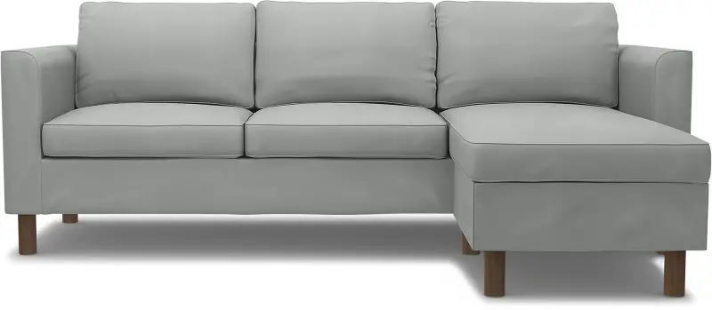 This Bemz cover fits the IKEA Pärup 3-seat sofa with chaise longue (235 cm long). It’s a 7-piece custom cover that includes: 1 sofa frame cover, 3 back cushion covers, 2 seat cushion covers, and 1 chaise longue cover. The cover is easy to put on with no assembly required. The sofa frame cover slides over the armrest and backrest and is pulled down over the seating area. Fitting instructions: Remove the original IKEA slipcover before fitting the custom-made Bemz cover.