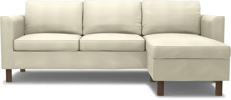 This Bemz cover fits the IKEA Pärup 3-seat sofa with chaise longue (235 cm long). It’s a 7-piece custom cover that includes: 1 sofa frame cover, 3 back cushion covers, 2 seat cushion covers, and 1 chaise longue cover. The cover is easy to put on with no assembly required. The sofa frame cover slides over the armrest and backrest and is pulled down over the seating area. Fitting instructions: Remove the original IKEA slipcover before fitting the custom-made Bemz cover.