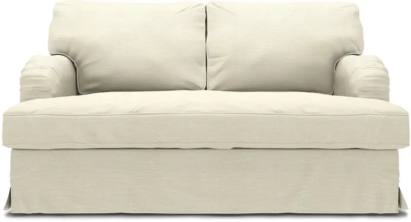 This style includes 4 pieces: 1 frame cover, 1 seat cushion cover / bench cushion cover and 2 backrest covers. It’s designed to only fit the IKEA Stocksund 2 seater sofa. This model features one cover enveloping the backrest, armrests and base frame. The cover is fastened in place along the backrest frame and armrests with velcro and a zip along the back of the sofa. The skirt features petite boxpleats at corners and is designed to skim the floor. Seat cushions are enclosed in a single, oversized seat cushion cover which is softly padded to avoid any creases between the inserts creating a luxe, custom look. Fitting instructions: Remove the original covers along with the seat and backrest cushions. Drape the cover along the back and over the armrests. Gently pull the cover over the frame. The cover is designed for the perfect neat fit, so adjust both sides of the backrest and armrests simultaneously making sure that the seams are aligned. The base frame cover is secured with velcro along the backrest and armrests. Make sure the seams are aligned along the base frame and that the boxpleat hits the corner of the frame covering the legs. The skirt is designed to skim the floor. When the base frame cover is in place, close the zip on the back of the sofa. Place both seat cushions inside the single bench cushion cover, zip and put in place. The padding is designed to prevent visible creases between the cushion inserts creating the illusion of one oversized seat cushion. Place the backrest cushions inside the backrest cushion cover, zip and put in place.