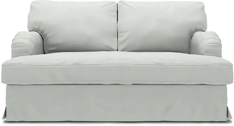 This style includes 4 pieces: 1 frame cover, 1 seat cushion cover / bench cushion cover and 2 backrest covers. It’s designed to only fit the IKEA Stocksund 2 seater sofa. This model features one cover enveloping the backrest, armrests and base frame. The cover is fastened in place along the backrest frame and armrests with velcro and a zip along the back of the sofa. The skirt features petite boxpleats at corners and is designed to skim the floor. Seat cushions are enclosed in a single, oversized seat cushion cover which is softly padded to avoid any creases between the inserts creating a luxe, custom look. Fitting instructions: Remove the original covers along with the seat and backrest cushions. Drape the cover along the back and over the armrests. Gently pull the cover over the frame. The cover is designed for the perfect neat fit, so adjust both sides of the backrest and armrests simultaneously making sure that the seams are aligned. The base frame cover is secured with velcro along the backrest and armrests. Make sure the seams are aligned along the base frame and that the boxpleat hits the corner of the frame covering the legs. The skirt is designed to skim the floor. When the base frame cover is in place, close the zip on the back of the sofa. Place both seat cushions inside the single bench cushion cover, zip and put in place. The padding is designed to prevent visible creases between the cushion inserts creating the illusion of one oversized seat cushion. Place the backrest cushions inside the backrest cushion cover, zip and put in place.