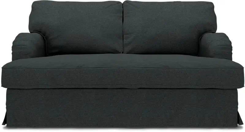 This style includes 4 pieces: 1 frame cover, 1 seat cushion cover / bench cushion cover and 2 backrest covers. It’s designed to only fit the IKEA Stocksund 2 seater sofa. This model features one cover enveloping the backrest, armrests and base frame. The cover is fastened in place along the backrest frame and armrests with velcro and a zip along the back of the sofa. The skirt features petite boxpleats at corners and is designed to skim the floor. Seat cushions are enclosed in a single, oversized seat cushion cover which is softly padded to avoid any creases between the inserts creating a luxe, custom look. Fitting instructions: Remove the original covers along with the seat and backrest cushions. Drape the cover along the back and over the armrests. Gently pull the cover over the frame. The cover is designed for the perfect neat fit, so adjust both sides of the backrest and armrests simultaneously making sure that the seams are aligned. The base frame cover is secured with velcro along the backrest and armrests. Make sure the seams are aligned along the base frame and that the boxpleat hits the corner of the frame covering the legs. The skirt is designed to skim the floor. When the base frame cover is in place, close the zip on the back of the sofa. Place both seat cushions inside the single bench cushion cover, zip and put in place. The padding is designed to prevent visible creases between the cushion inserts creating the illusion of one oversized seat cushion. Place the backrest cushions inside the backrest cushion cover, zip and put in place.