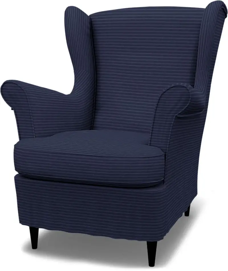 This cover is specially designed to fit the IKEA Strandmon armchair. It comes with classic piped edges and a clean modern style – a cool Scandinavian twist on the original IKEA cover. It includes 2 individual pieces: 1 frame cover and 1 seat cushion cover. The cushion cover is reversible. The frame cover is designed to fit on top of the original cover (as the original cover is not removable). So if you have a brightly coloured or patterned model, this might show through lighter, finer fabrics. Unsure? Test a free sample before you order.
