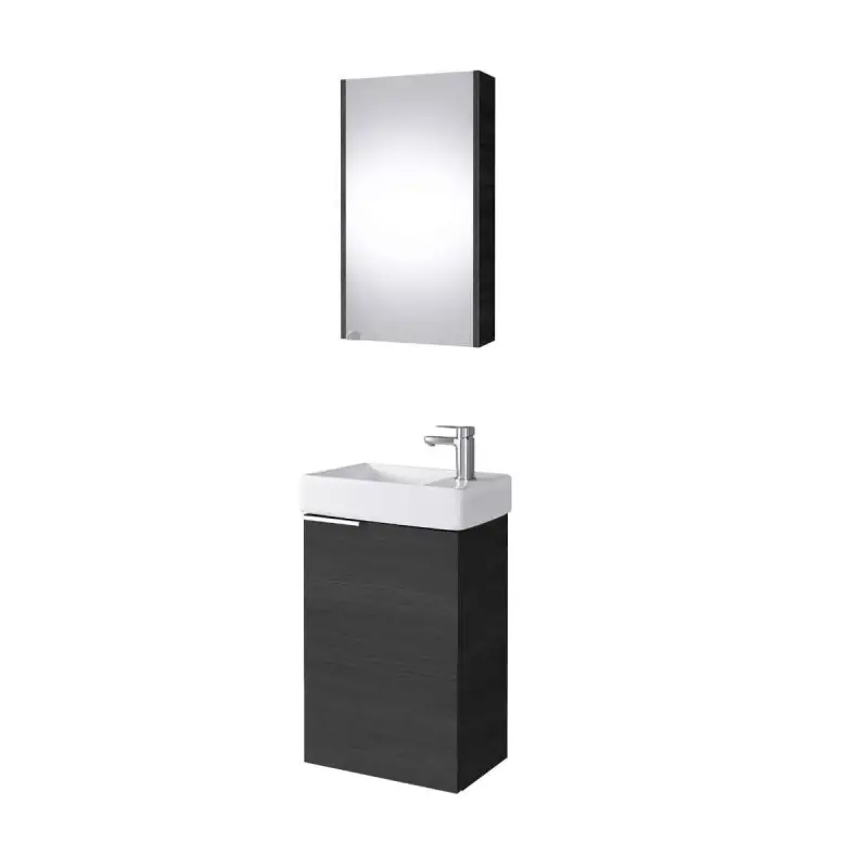 Impact Furniture Bathroom Furniture Set 400mm Vanity Unit Sink Basin Mirror Cabinet Small Wall Hung Black Grey Wood Effect Avir Black