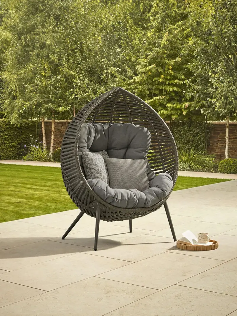 Relax and unwind in the ultimate comfort with our Indoor Outdoor Teardrop Occasional Chair. With a large, plump cushion that curves to the faux wicker frame, which has a natural tone, there is plenty of space for you to cosy up and enjoy the summer sun all day long. What's better: in the winter when the weather no longer permits outdoor seating, this chair can be repurposed inside for a cosy reading nook in the colder months! Click here to view our useful Outdoor Furniture Buying Guide. Click here for our Outdoor Furniture Care Guide.