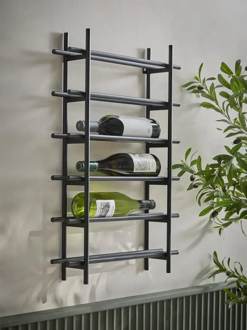 Introduce a sleek, functional style to your kitchen or dining space with our industrial wine rack. Crafted from sturdy iron, it offers a striking yet minimal way to display your favourite bottles. The open, horizontal design keeps labels visible and bottles within easy reach, while the wall mounted format frees up valuable counter or floor space. As part of our Industrial trend, this wine rack works in homes that embrace a modern and minimalist style.