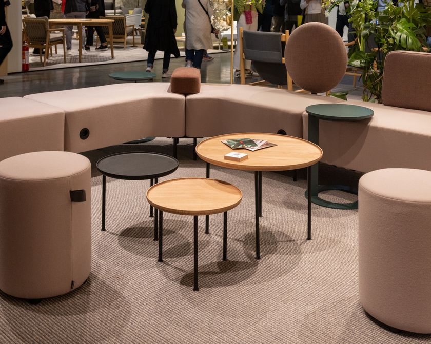 Round coffee table in ash wood and steel