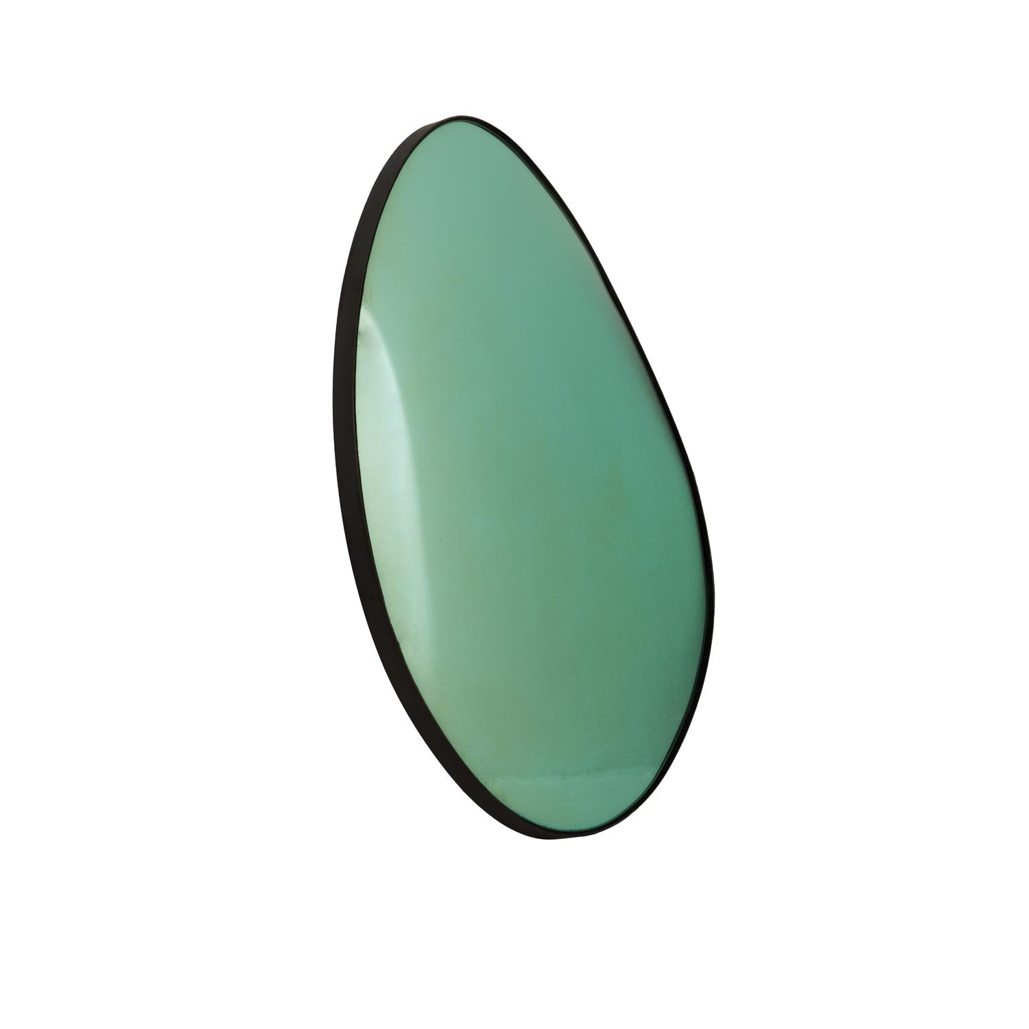Discover the stunning Islington Collection by Sean Phelan, featuring unique convex mirrors in four striking colours: Bronze, Silver, Blue, and Green. Handcrafted from coloured glass, these organic-shaped designs offer an elegant touch to any space. Islington Mirror, Green, Mirror, Small - Andrew Martin
