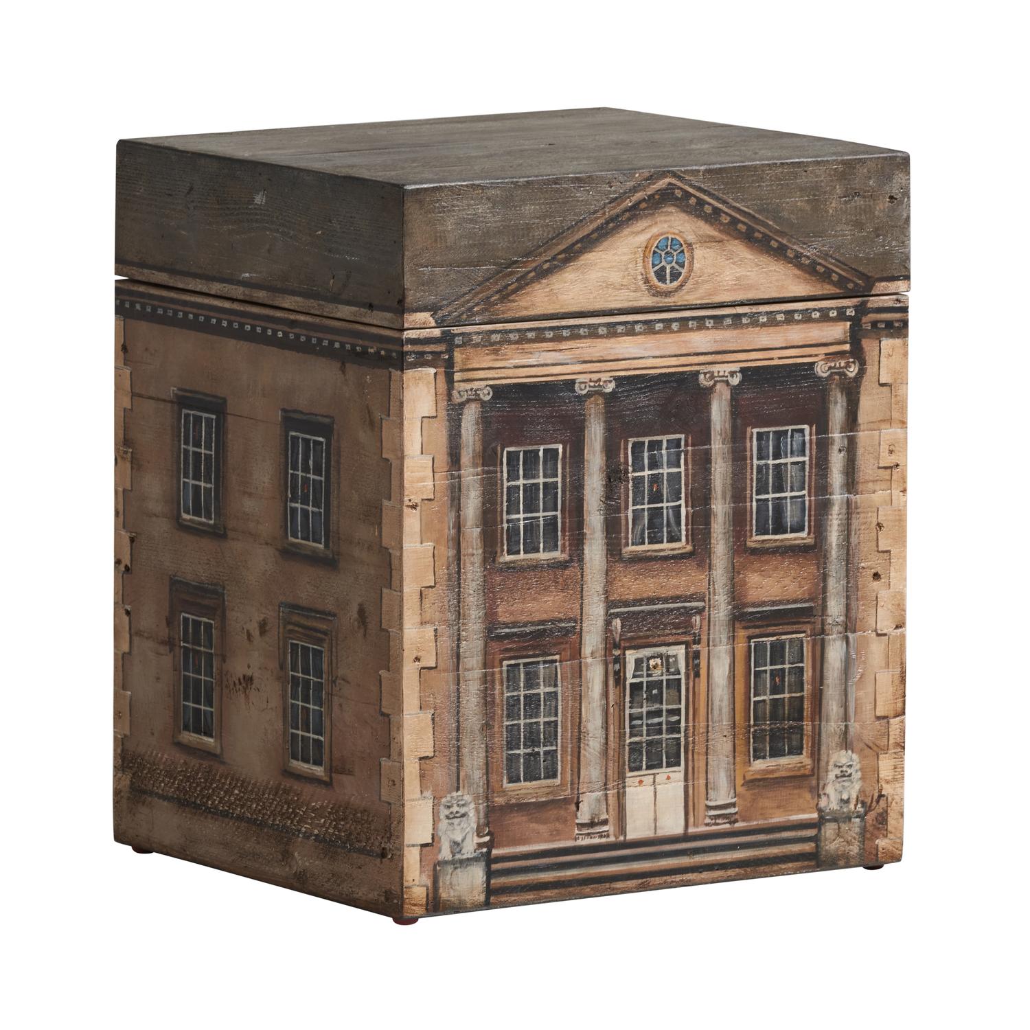 Whimsical hand-painted storage trunk made from reclaimed pine. Jacopo features a Georgian manor façade and striped cotton-lined interior. Practical and full of charm. Jacopo, Side Table - Andrew Martin