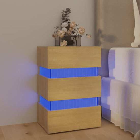 Kame Wooden Bedside Cabinet In Sonoma Oak With Led Lights