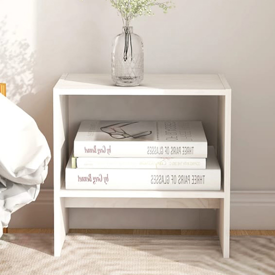 Kasia Pinewood Bedside Cabinet With Undershelf In White