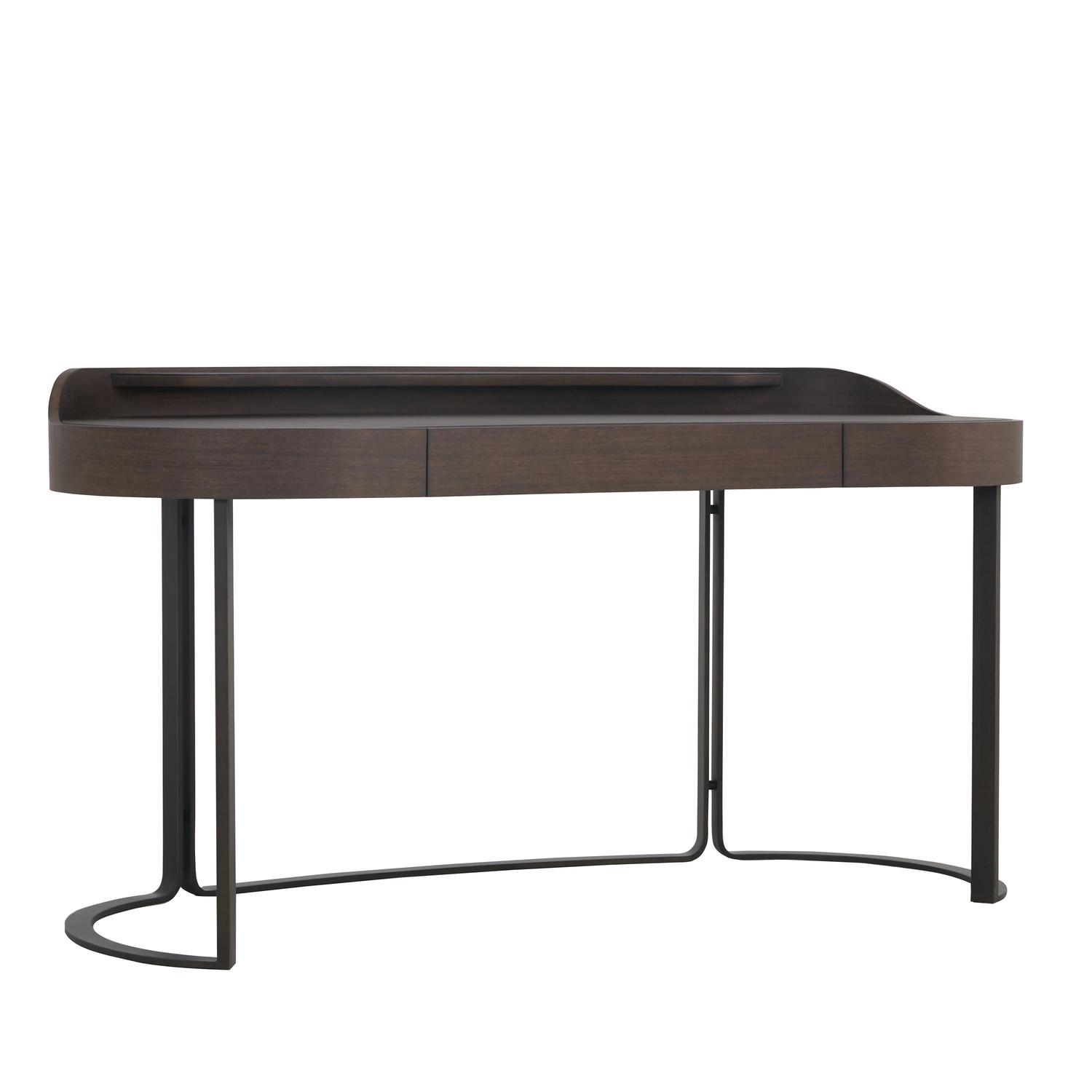 The Kensington Desk combines rich walnut veneer and luxurious leather with sleek steel legs, offering timeless elegance and practical storage for your workspace. Kensington Desk, Desk, White - Andrew Martin