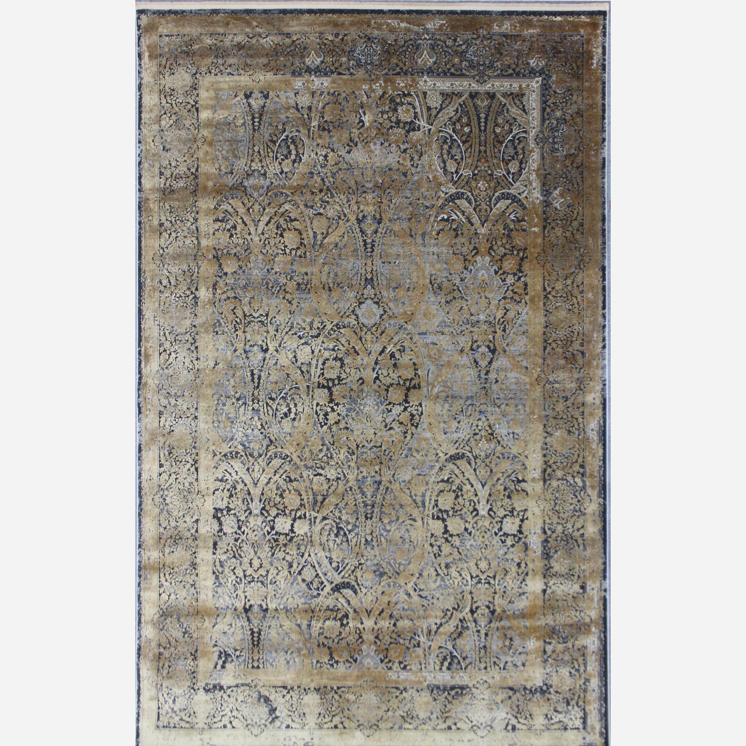 Luxury Persian rug in gold and navy Kiana, Rug, 160cm x 230cm - Andrew Martin