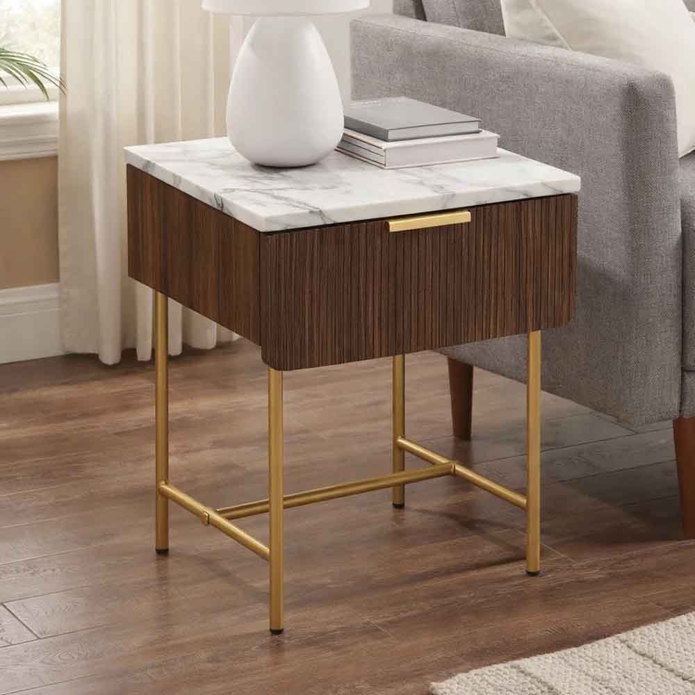 Kinder Marble Top Side Table With 1 Drawer In Dark Walnut And Gold