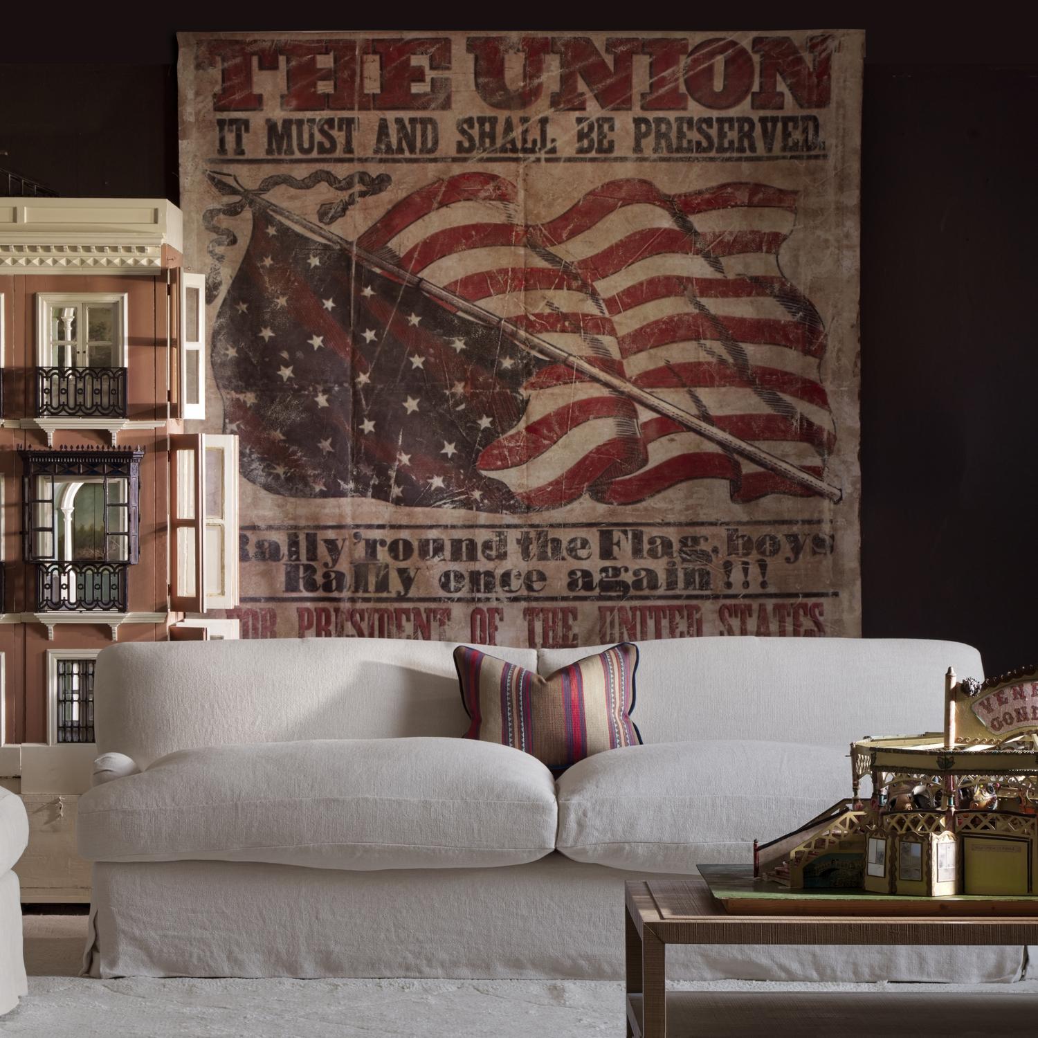 Spacious yet very elegant, Lady May features delicate English rolled arms and a classic white loose removeable linen cover. Lady May Sofa in Stone, Sofa - Andrew Martin Linen