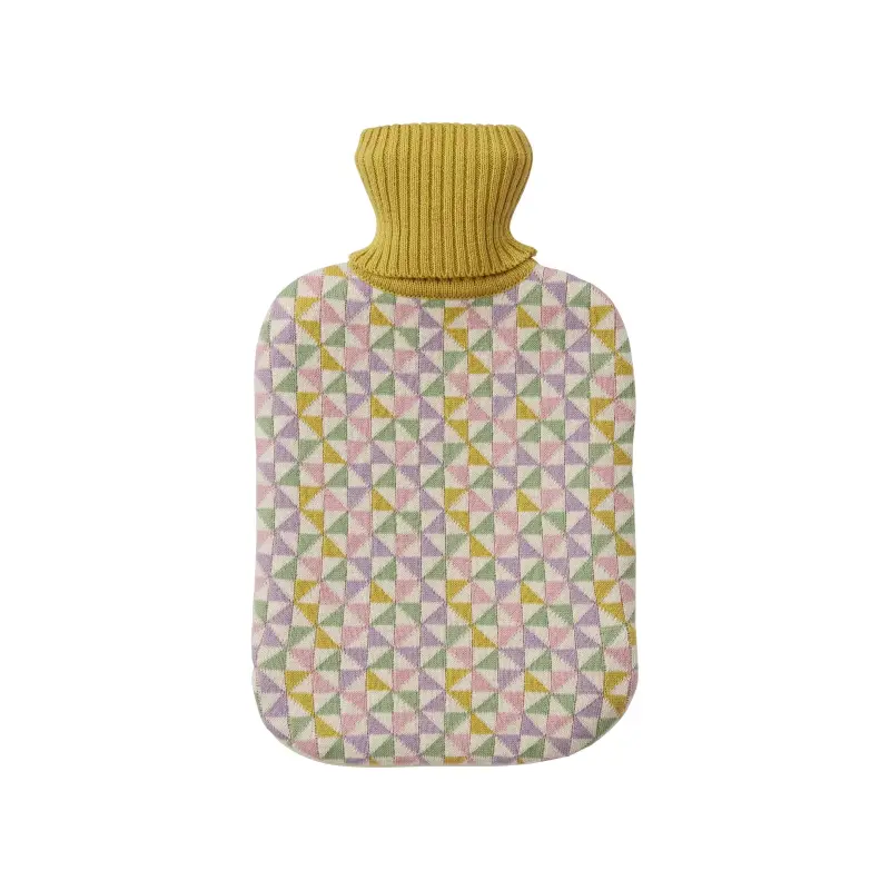 Burren Hot Water Bottle Cover Multi A hot water bottle and matching bed socks featuring a geometric knit pattern with contrast coloured ribbed edging for a stylish finishing touch. Perfect for keeping cold toes warm all through the winter. Hot water bottle and socks are available separately. 100% cotton.