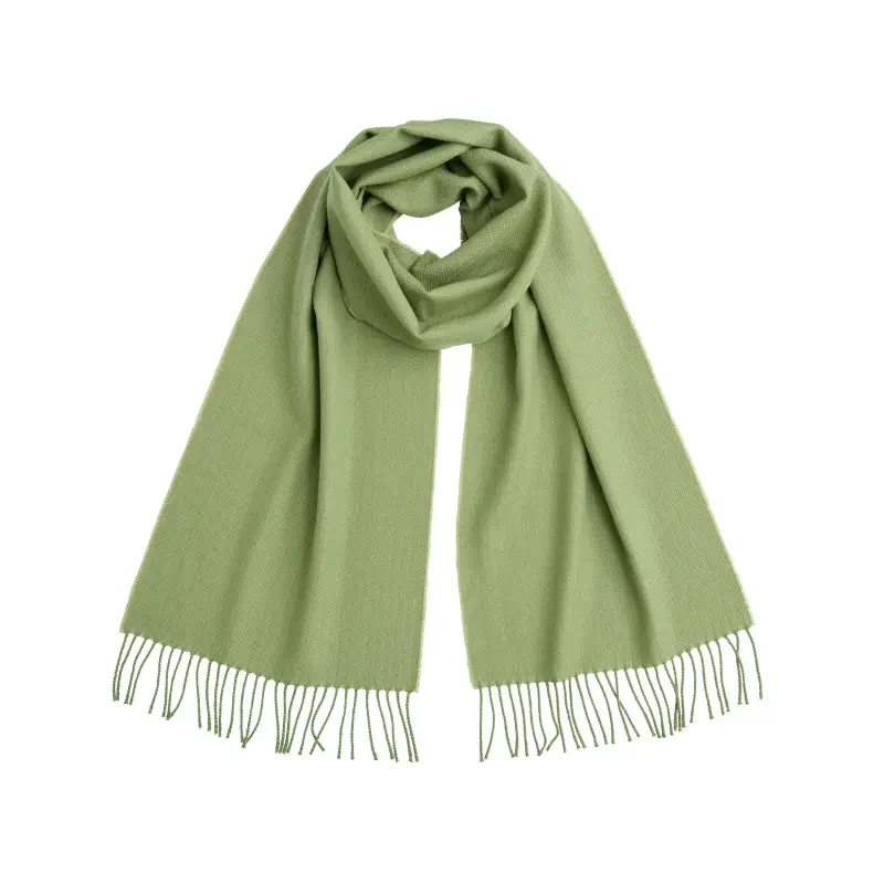 Enya Scarf Green This beautifully soft scarf (30x198cms) is perfect for keeping the winter chills at bay. Made from 100% merino wool it features a subtle herringbone pattern and is finished with fringed edges.