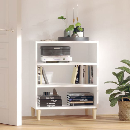Larya Wooden Bookcase With 3 Shelves In White, This bookcase will make a great addition to your living space. FEATURES : Material : Chipboard, Solid Eucalyptus Wood Finish : White, Oak This bookcase is made of board, which ensures its sturdiness, durability and long-lasting service The wooden legs also add extra stability This bookcase features 3 shelves, providing ample storage space The sturdy tabletop is ideal for displaying decorative objects, photo frames or potted plants Additionally, the storage cabinet is easy to clean with a damp cloth Manual assembly is required Available at an affordable price Images shown are for illustration purpose only DIMENSIONS : Height : 70cm Width : 57cm Depth : 35cm