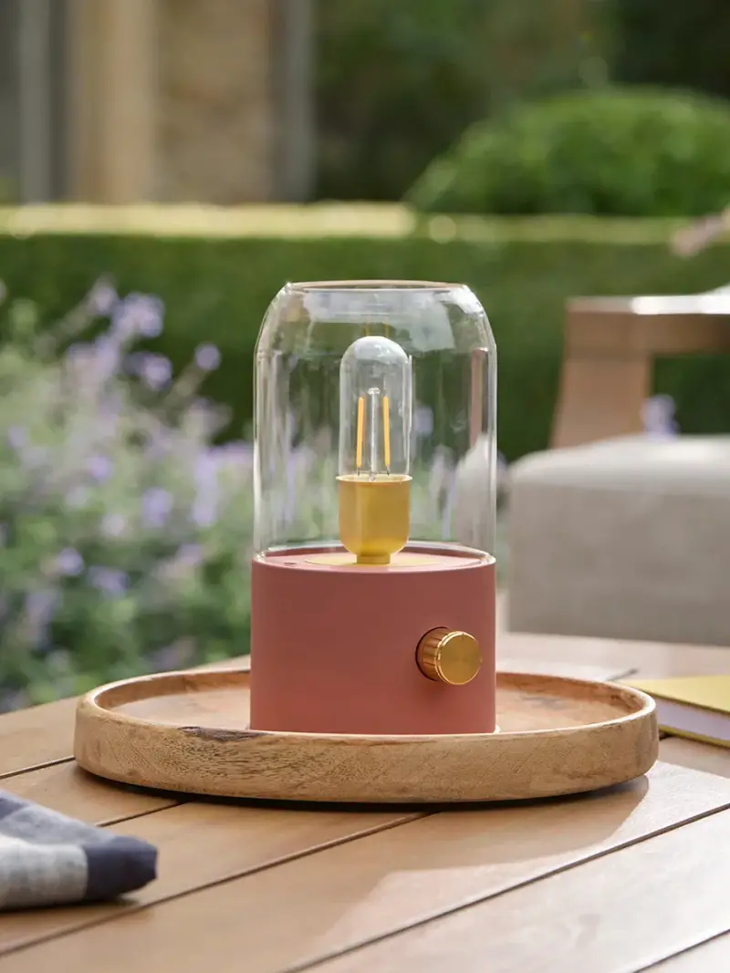 Combining form and function in perfect balance, our LED Rechargeable Outdoor Lantern in Terracotta brings a contemporary edge to relaxed outdoor living. Its smooth, minimalist base contrasts beautifully with the clear shade, allowing the warm glow within to take centre stage.The integrated dimmer dial offers complete control, from a soft, ambient glow to bright, focused light, adapting effortlessly to evenings that stretch from dusk to night.Rechargeable and cordless, it can be moved with ease from garden table to dining table, offering understated luxury to every setting.
