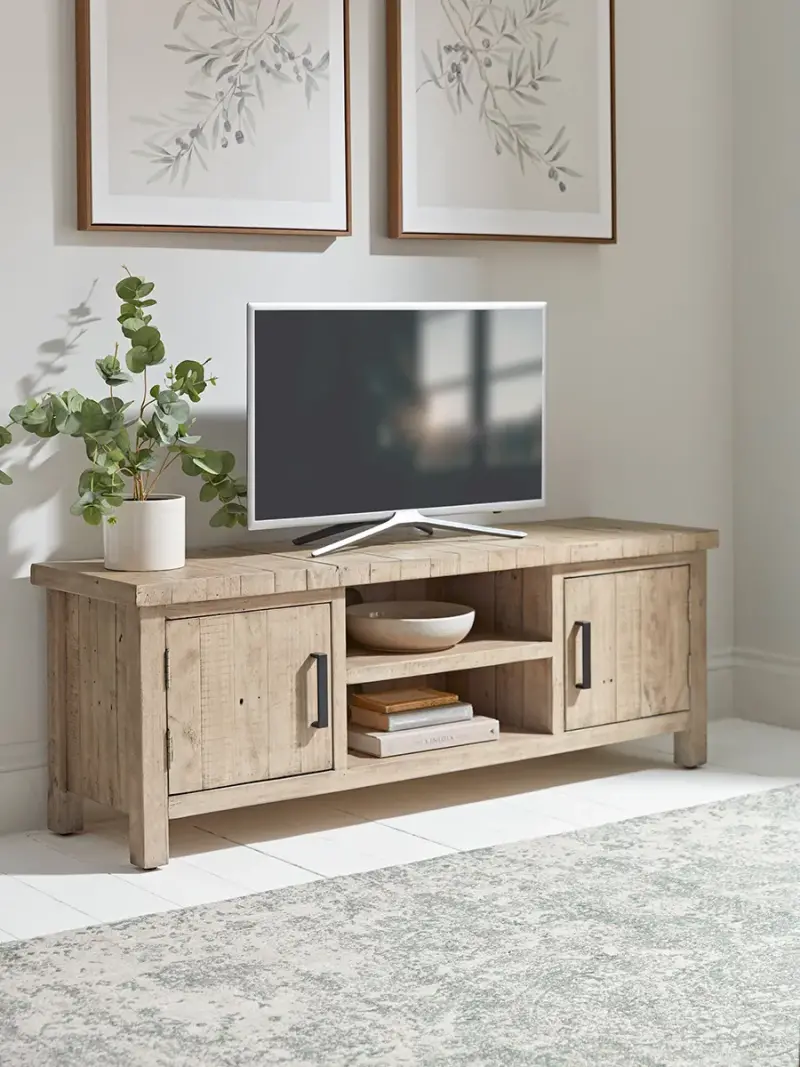 Elevate your media space with our Leida media unit.Full of relaxed charm, the reclaimed wood works seamlessly with the sleek black hardware to give the piece a contemporary edge.With plenty of space for storage, this media unit would suit an industrial scheme.Pair with our Leida sideboard for the completed look.