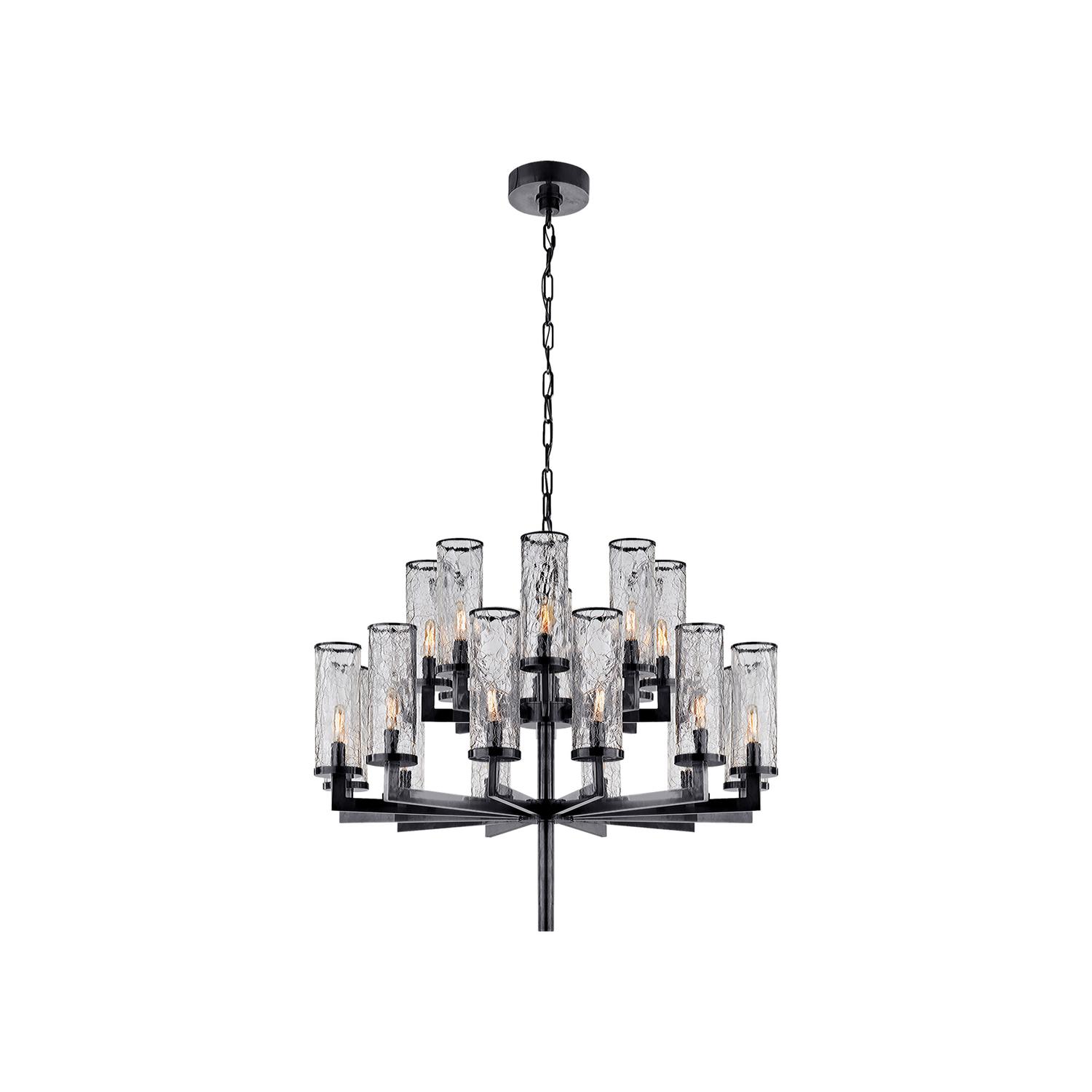 The highlight of this stunning double-tiered chandelier is designer Kelly Wearstler's signature fractured glass; carefully cast with a textured finish. Liaison Chandelier Bronze, Chandelier, 2 Tier - Andrew Martin