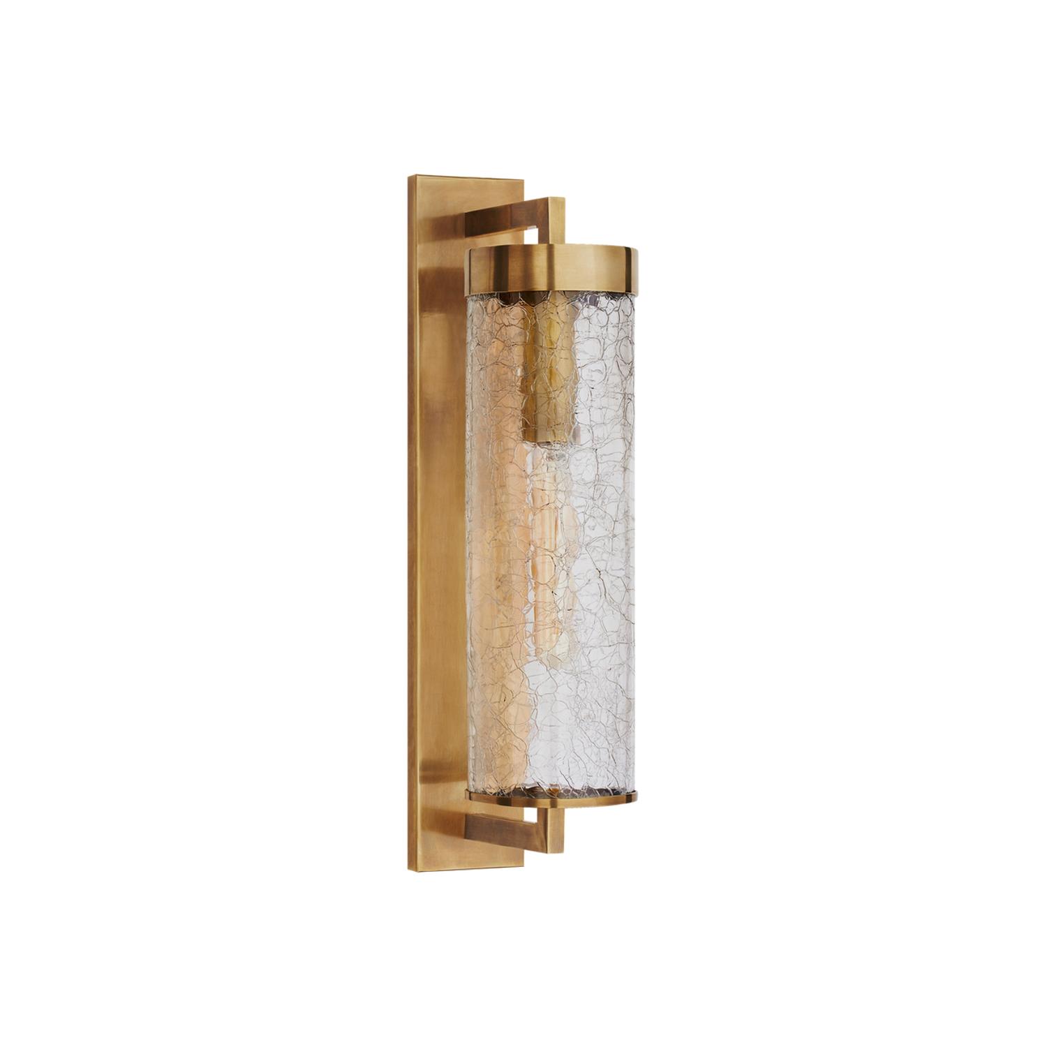A linear wall light with antique burnished brass / bronze back plate and tubular shade in unique crackled glass. Liaison has been designed for outdoor use and its sleek design has a timeless feel. Liaison Linear Wall Light Brass, Wall Light, Antique-Burnished Brass - Andrew Martin