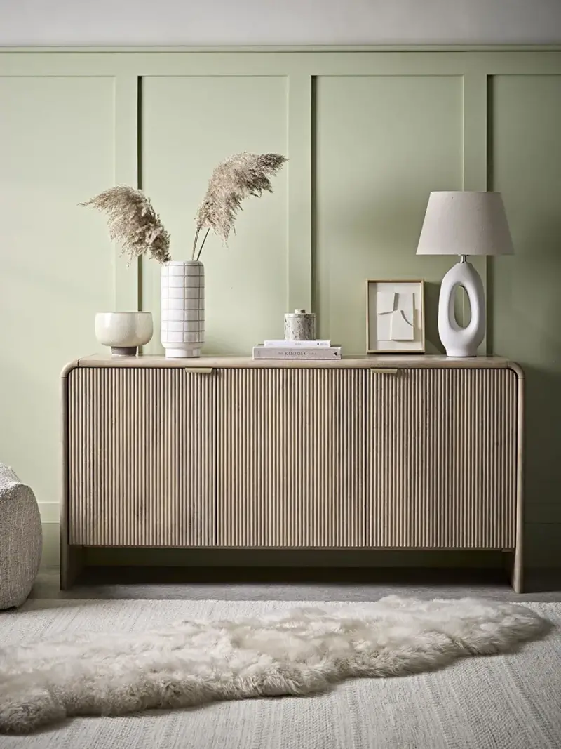 With a study frame, softened by curved corners, our Lija sideboard is fronted with ribbed door panels, creating a unique yet subtle twist to your home. Finished with luxury brass door handles, this sideboard, with its blonde mango wood frame and simple shape, works wonderfully in our Scandi trend.