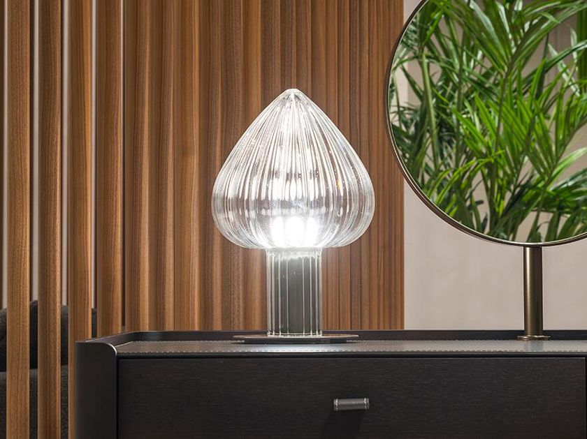 Table lamp in grooved glass