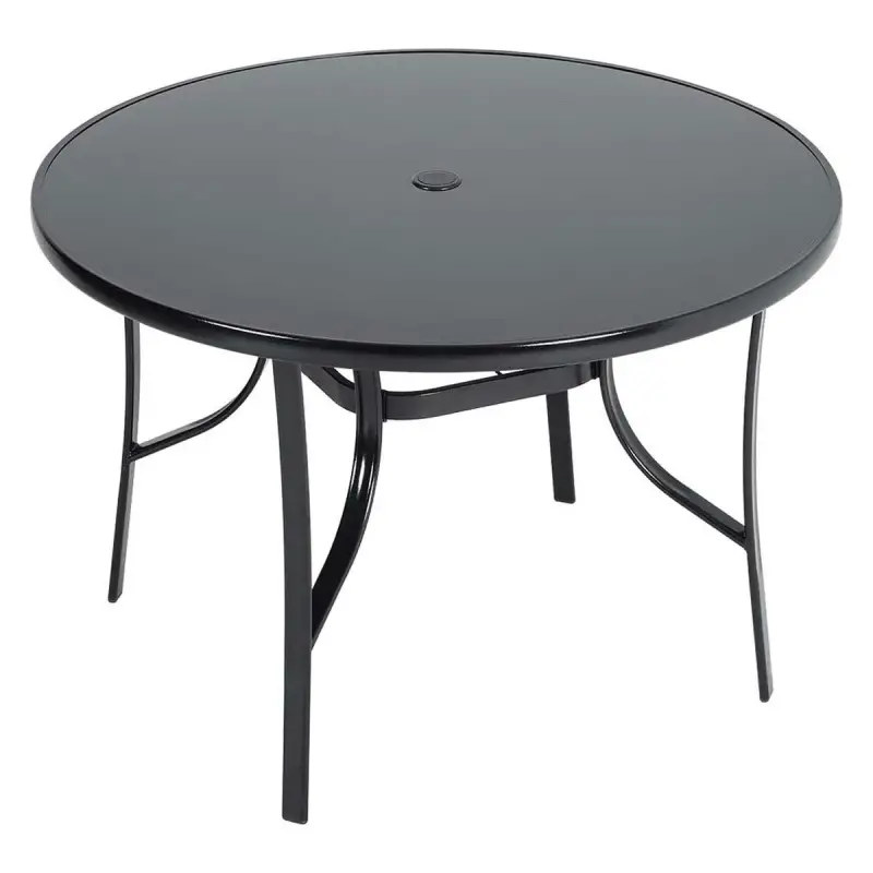 Livingandhome 105cm Round Garden Glass Table Furniture With Parasol Hole Black