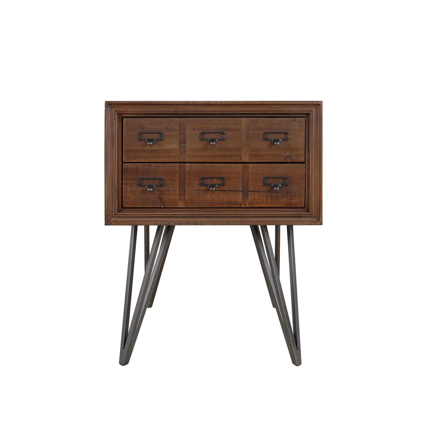 The Lloyds Side Table combines reclaimed wood and industrial iron, offering two drawers for storage and a unique design that adds style and function to any space. Lloyd Side Table, Side Table - Andrew Martin
