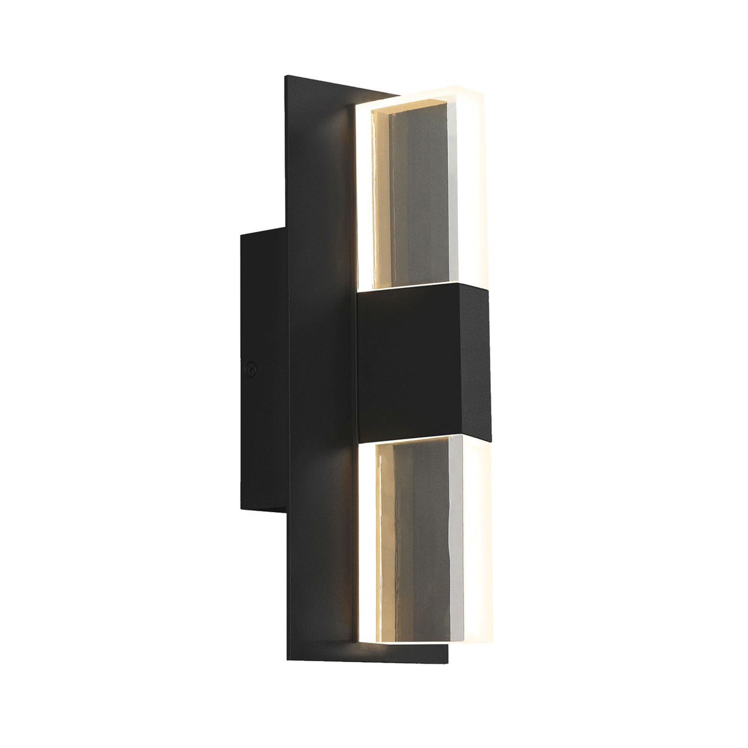 This linear wall light has a matte black finish for a sleek, modern look. The LED light creates a soft illumination, emphasised by the slim, rectangular clear glass either side. Lyft Wall Light, Wall Light, Small - Andrew Martin