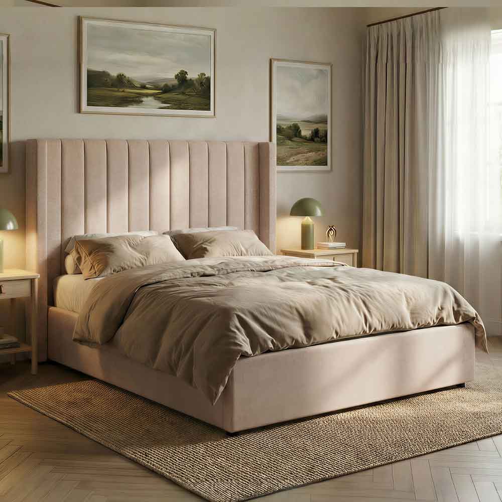 Introduce timeless elegance and smart functionality to your bedroom with the Furniture in Fashion Madison Fabric Ottoman Storage King Size Bed in Stone. Designed with modern lifestyles in mind, this stylish bed features a refined stone fabric upholstery that complements any decor from minimalist to classic. The generously padded headboard not only enhances the aesthetic appeal but also provides the perfect support for relaxing, reading or watching TV in bed. This king-size ottoman bed offers a clever space-saving solution with its easy-lift storage base. Whether you need extra room for bedding, seasonal clothes or daily essentials, the spacious hidden compartment helps you keep your bedroom neat and organized. Combining luxury with practicality, the Madison bed is an ideal choice for those who seek comfort, style and efficient living. FEATURES : Material : Fabric Finish : Stone Soft-touch fabric in a versatile stone shade enhances both modern and traditional interiors Lift-up base reveals a large under-bed area perfect for storing linens, duvets and more Generous sleeping area offers superior comfort for couples or anyone who loves extra space Effortless and smooth lifting action for quick and easy access to storage Deeply cushioned for maximum comfort and a touch of luxury Built to last with a sturdy base and reinforced support system Ideal for maximizing bedroom space without compromising on style Comes with comprehensive instructions and all necessary fittings for quick assembly Please note : Mattress not included Available at an affordable price Images shown are for illustration purpose only DIMENSIONS : Headboard Height : 140cm Side Rail Height : 31cm Bed Length : 217cm Headboard Width : 173cm Leg Height : 2cm Storage Dime-nsions : 203cm x 152cm x 23cm