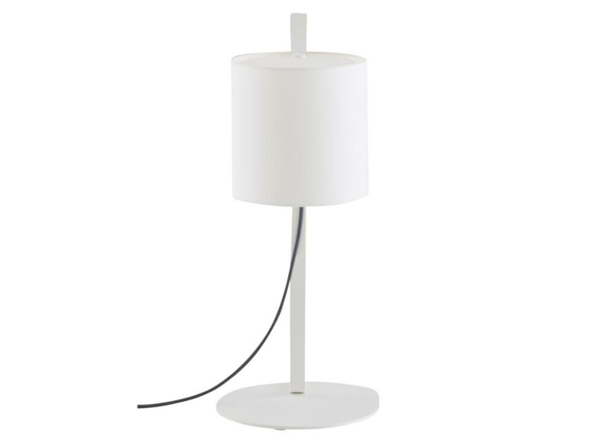 Table lamp with steel base and cotton shade