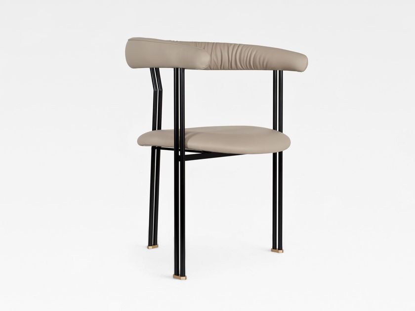 Upholstered leather chair with armrests